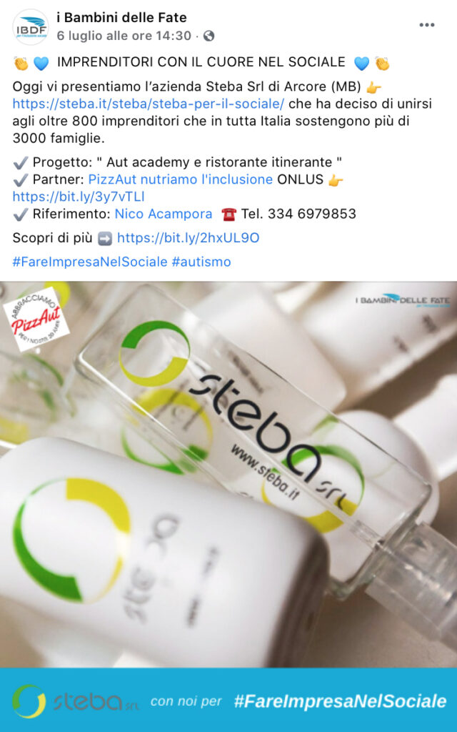 Dal 2018 Steba sostiene il progetto PizzAut, nato inizialmente col fine di ottenere guadagni per aprire un ristorante gestito da ragazzi con autismo. E ce l’ha fatta!